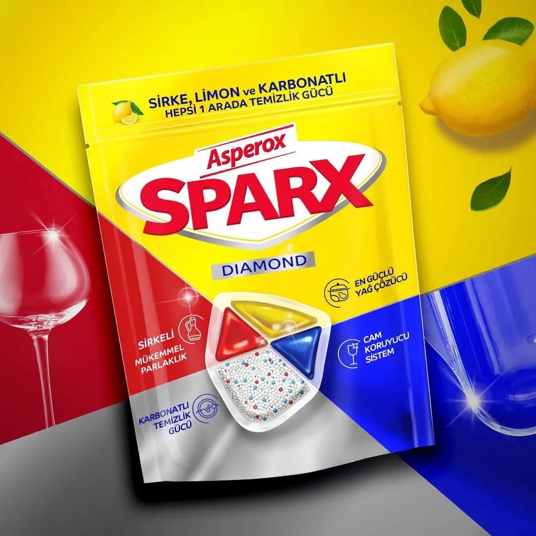 قرصهای Asperox Spary Diamond با الهام از عناصر طبیعی—سرکه، لیمو و کربنات—فرمولی قدرتمند برای مقابله با چربیهای سرسخت و لکههای مزاحم ارائه میدهند. این ترکیب نهتنها پاککنندگی عمیق دارد، بلکه به ظروف شما درخششی تازه و بینقص میبخشد.