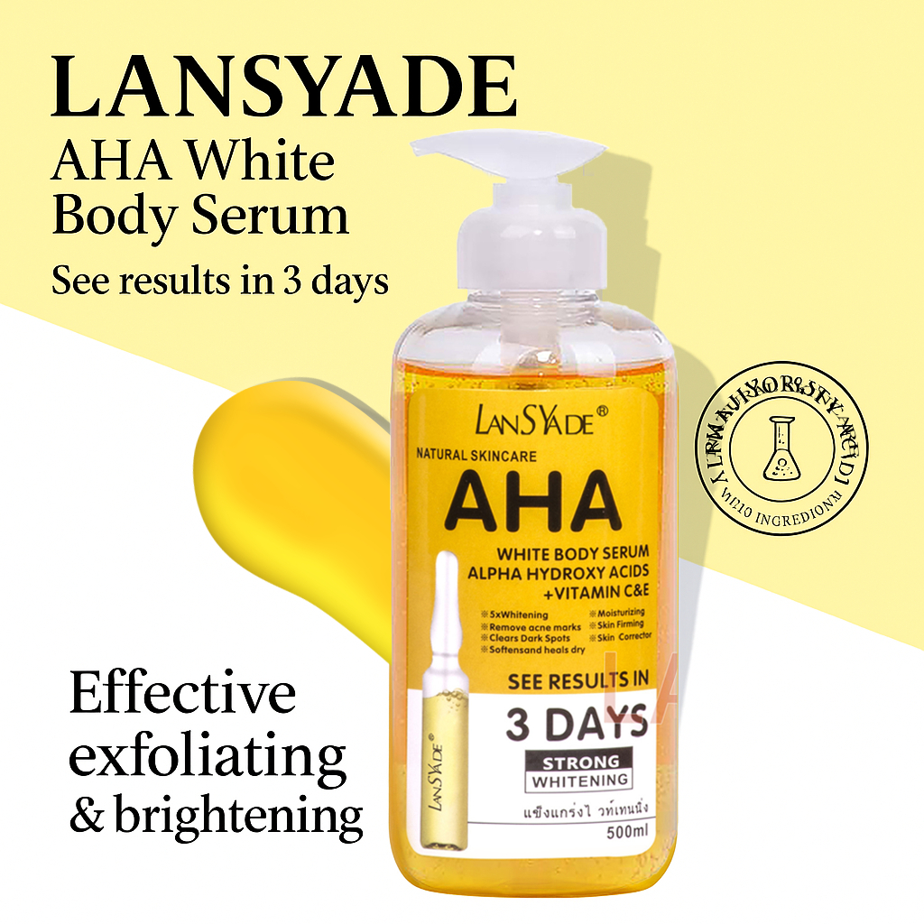 سرم بدن Lansyade ترکیبی هوشمندانه از علم مراقبت پوست و زیبایی طبیعی است ✨. این محصول با فرمولاسیونی غنی از آلفا هیدروکسی اسیدها (AHA)، ویتامین C 🍊 و ویتامین E 🌿، بهگونهای طراحی شده که در مدت زمان کوتاهی—فقط ۳ روز—تغییری ملموس در شفافیت و لطافت پوست ایجاد کند.