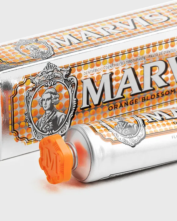 خمیر دندان Marvis Orange Blossom ترکیبی منحصربهفرد از طعم شکوفه پرتقال و خنکی نعناع است که تجربهای متفاوت و لذتبخش از مراقبت دهان و دندان را فراهم میکند. این محصول با فرمولاسیون ملایم خود به پاکسازی مؤثر دندانها کمک کرده و حس تازگی و خوشبویی طولانیمدت در دهان ایجاد مینماید. طراحی کلاسیک و بستهبندی لوکس با رنگ نقرهای و نارنجی، جلوهای خاص به این خمیر دندان بخشیده و آن را به انتخابی جذاب برای افرادی تبدیل کرده است که به دنبال کیفیت بالا و طعمی متفاوت هستند. حجم ۷۵ میلیلیتر آن برای استفاده روزانه ایدهآل بوده و ساخت ایتالیا بودن، تضمینکننده اصالت و کیفیت محصول است.